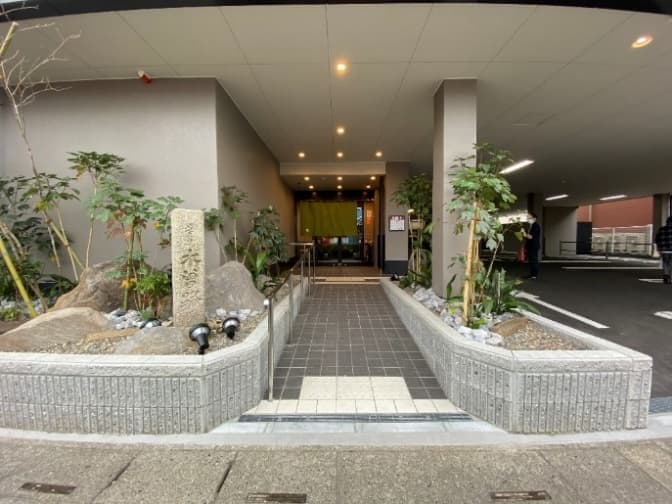 - 道等から建築物の出入口までの経路上に、砂利敷、飛石、小段等があると車椅子使用者やベビーカー等の移動等が難しい。このような場合、施設管理者又はテナント等は、道等から建築物の出入口まで円滑に利用することができる経路を1以上、確保できるよう、別の措置を講じる必要がある。